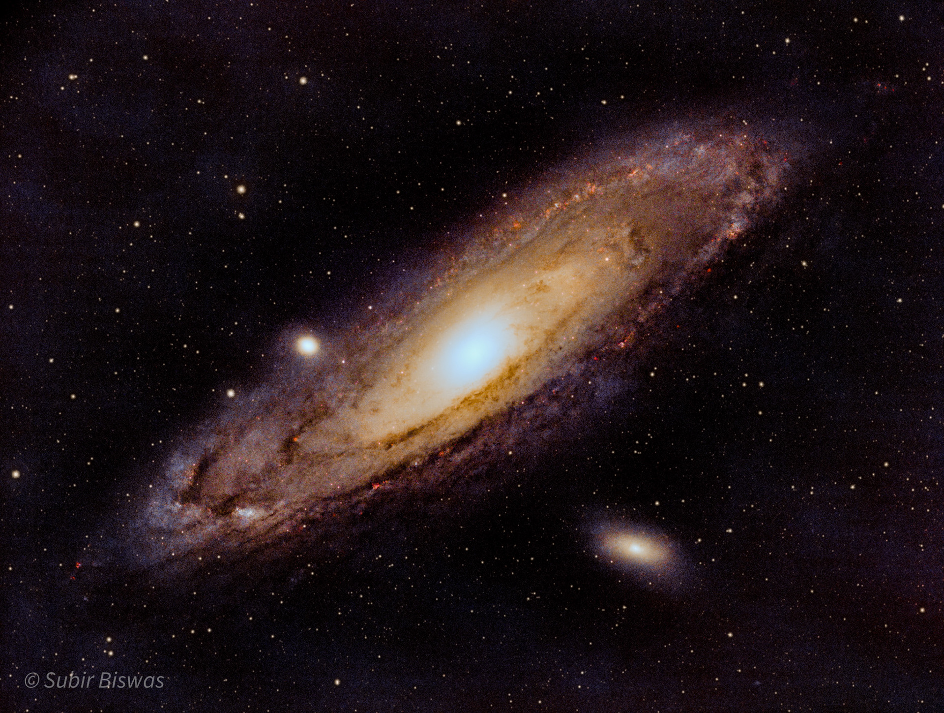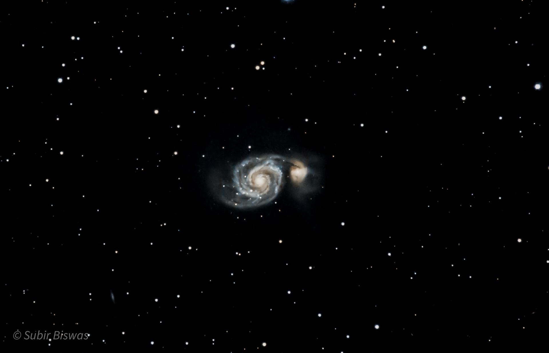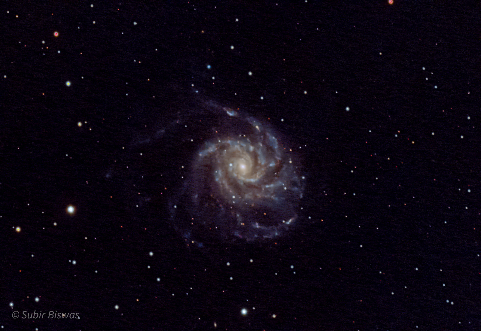 In practice, a major challenge in astro-imaging comes from our planet’s own spinning motion. The earth spins around its own axis with an angular speed of around 15 arc-seconds per second. One arc-second is 1/3600th of a degree. As a result of this spin of a ground-based camera with respect to a celestial target, any exposure longer than a few fractions of a second creates star trails and blurring, thus spoiling the image. The way to circumvent this is to spin the camera itself in synch with earth’s sidereal motion (i.e., the spin) so that the target celestial object does not drift with respect to the camera sensor during a long exposure. Software-controlled motors are used to drive a camera mount on a tripod to achieve this. Depending on the accuracy of such control hardware and software, this enables an imager to take single exposures up to tens of minutes long.